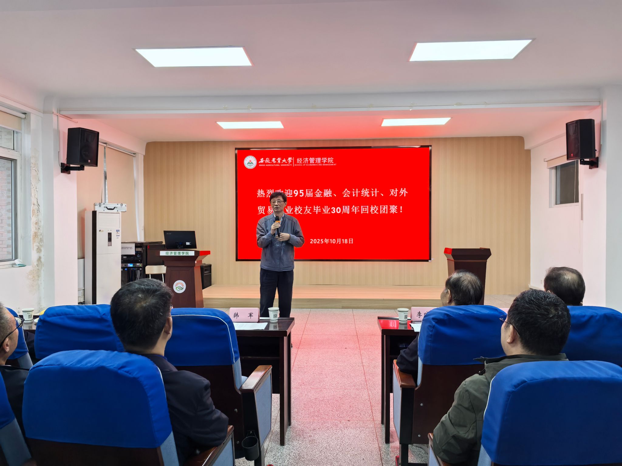 本网讯 岁月鎏金,秋意渐浓。10月18日,经济管理学院1995届金融、会计统计、对外贸易专业校友相聚安农,举办毕业三十周年返校活动。学校校友会副会长韩军出席会议,学院党委副书记、纪委书记周涛,副院长魏晓飞,学院教师等师生代表与返校校友相聚一堂,共叙师生情谊,共话母校发展,共忆青春韶华。