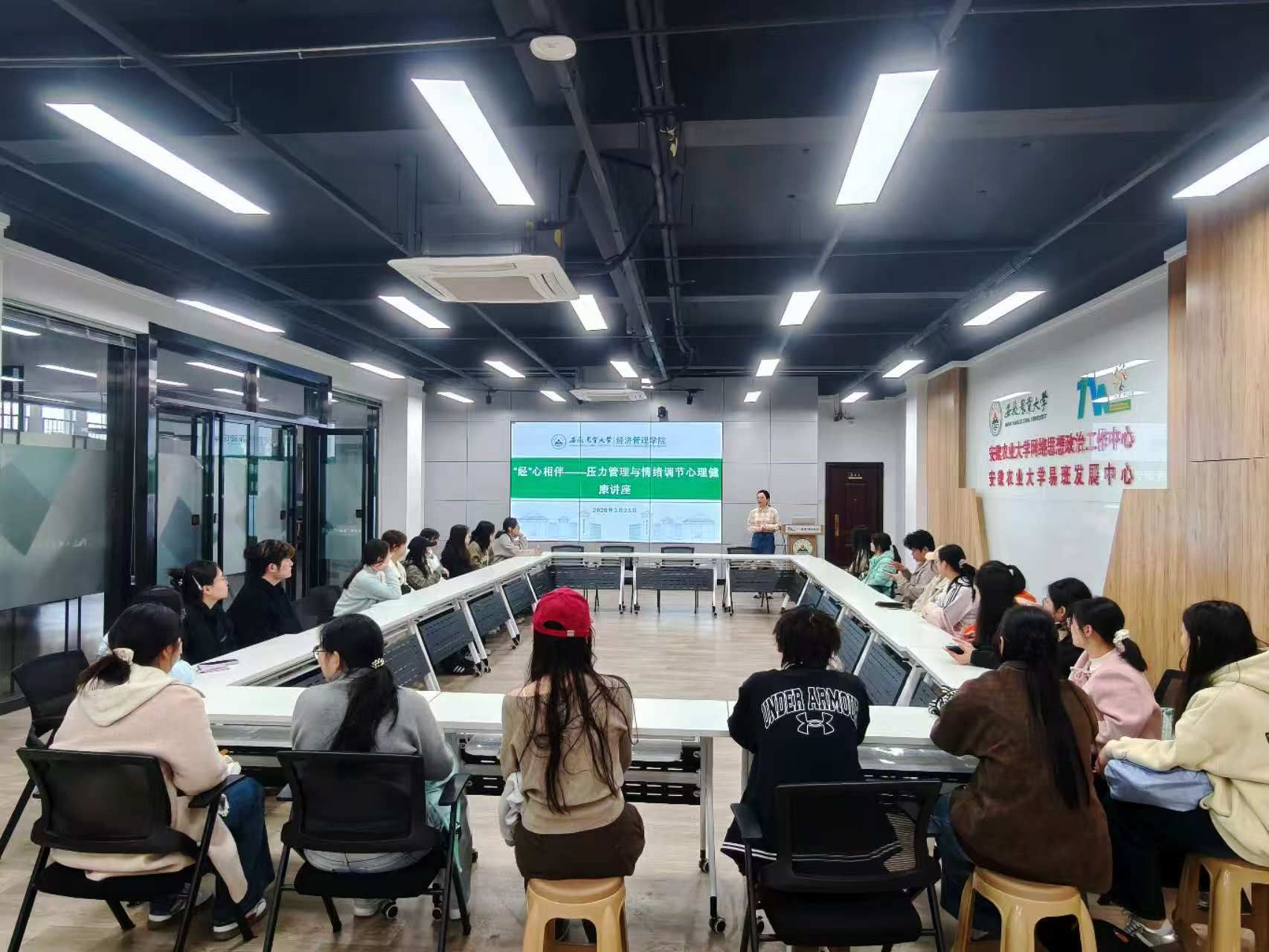 3月25日下午,“经”心相伴——压力管理与情绪调节心理健康讲座在“一站式”学生社区南区开展,学院心理委员参加。活动旨在帮助学生科学应对压力、提升心理调适能力、营造积极健康的校园氛围。学院负责老师结合学习规划、职业规划中的常见压力,围绕压力识别、情绪调节、认知重构等方面进行系统讲解,并通过案例分析、互动问答等形式,帮助大家掌握实用的情绪调节方法。