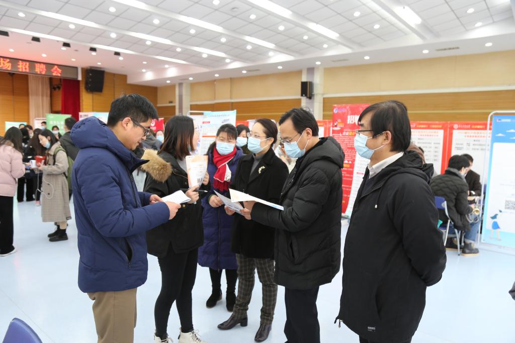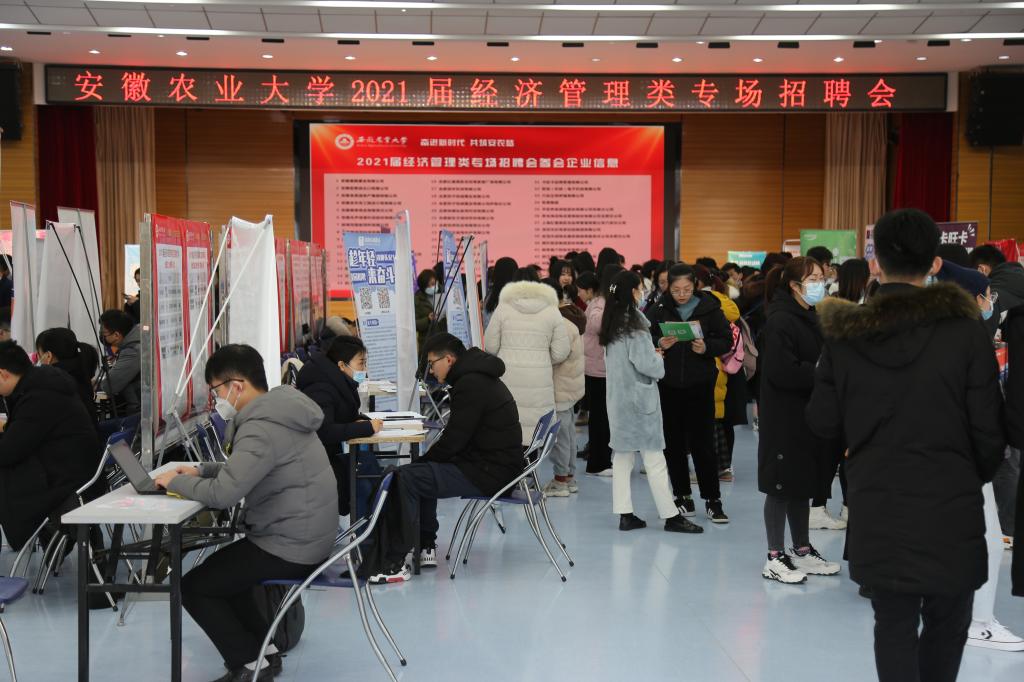 本网讯 为深入贯彻落实2021届全国普通高校毕业生就业创业工作视频会议精神,做好疫情防控常态化条件下的校园招聘工作,提升就业质量。2020年12月15日上午,我校2021届经济管理类专场招聘会在欣苑食堂四楼大学生活动中心举行。校党委常委、副校长李红,校党委常委、副校长操海群到现场指导工作,校招就处相关负责人、经济管理学院党政领导陪同参加。