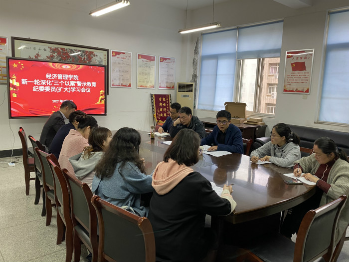 本网讯 4月1日下午,我院在经管楼302会议室召开纪委委员(扩大)学习会议,专题学习新一轮深化“三个以案”警示教育,学院纪委委员、各党支部纪检委员参加会议,会议由院党委副书记、纪委书记、副院长吴国卿主持。