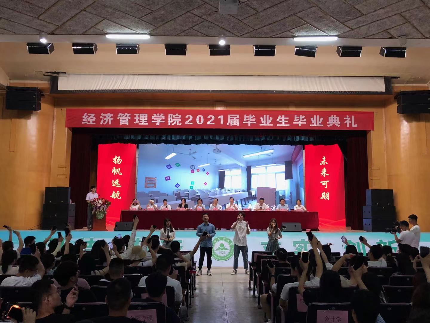 本网讯 为进一步增强毕业生尊师爱校情结,提升社会责任感,6月8日下午,我院在校大礼堂举行经济管理学院2021届毕业生毕业典礼。校党委常委、副校长操海群,学院党政领导、系主任出席,全体毕业班班主任及800余名毕业生参加了典礼。典礼由学院党委副书记、纪委书记、副院长吴国卿主持。