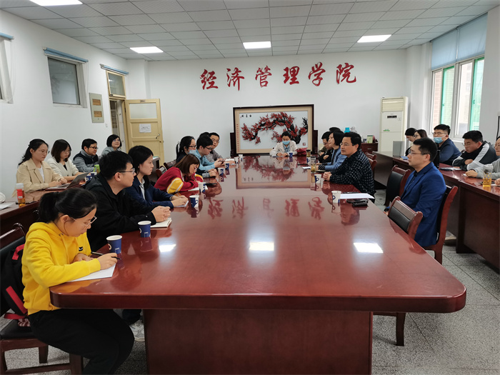 本网讯 为了进一步活跃学院学术氛围,提高青年教师学术能力,10月13号下午,经济管理学院举办青年教师交流及博士基金申报交流会。学院党委书记、院长孙超出席会议,并与青年教师亲切交流。孙超指出“青年教师之间的交流非常重要,学院要不断创造条件,促进青年教师交流与成长”。交流会由该院副院长宋燕平主持,学院相关专业青年骨干教师参加了交流会。