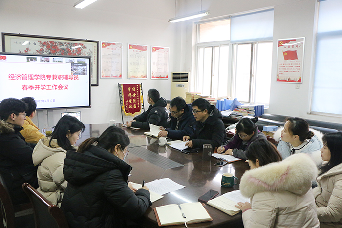 本网讯 2月17日上午,经济管理学院组织召开新学期专兼职辅导员工作线上会议,讨论布置新学期重点工作。学院副院长田涛出席会议,全体专兼职辅导员参加会议,会议由学院党委副书记、纪委书记、副院长吴国卿主持。