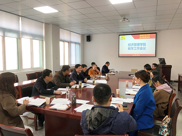 本网讯 为进一步提升学院本科教学人才培养质量,3月2日下午,经济管理学院在经管楼304会议室召开了本科教学工作会议。学院党委书记、院长孙超,党委副书记、常务副院长何如海出席会议并讲话,分管教学副院长田涛主持会议,各专业负责人、系主任、教学秘书参加会议。