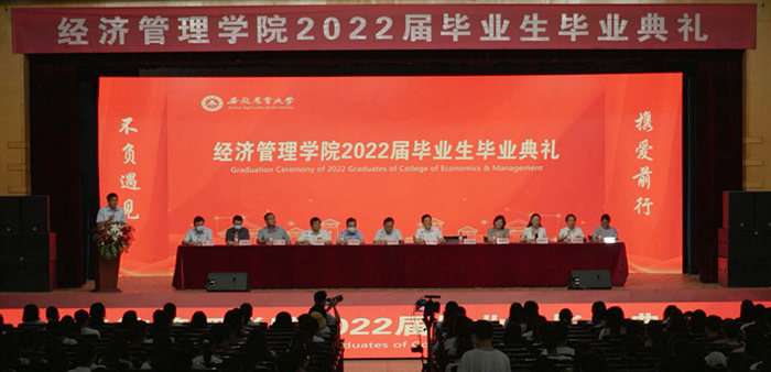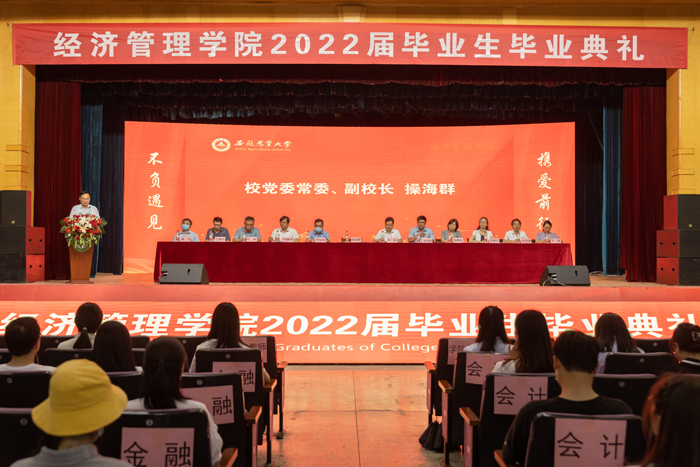 本网讯6月2日下午,经济管理学院2022届毕业生毕业典礼在学校大礼堂顺利举行。校党委常委、副校长操海群,经济管理学院党政领导、系主任出席,全体毕业班辅导员及1000余名毕业生参加或视频观看了此次毕业典礼。典礼由学院党委副书记、纪委书记、副院长吴国卿主持。
