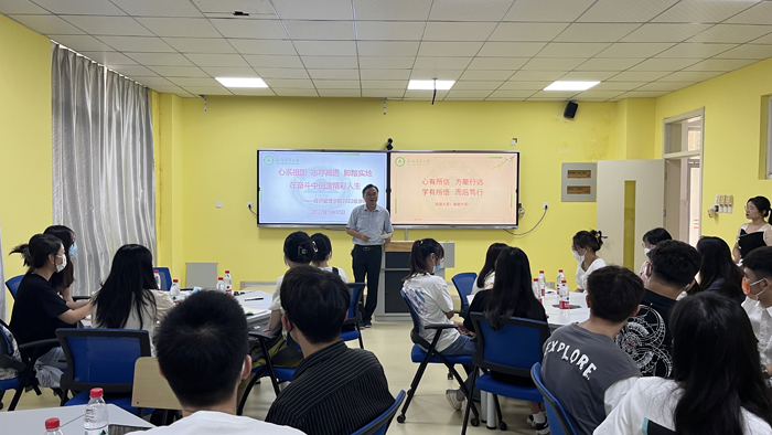 本网讯 9月10日上午,校党委常委、副校长操海群来到经济管理学院102智慧教室,深入联系班级,参加2022级学硕班第一次主题班会。研究生院领导、学院党政领导和2022级学硕班全体学生共同参加了主题班会,班会由研究生班主任万清华主持。