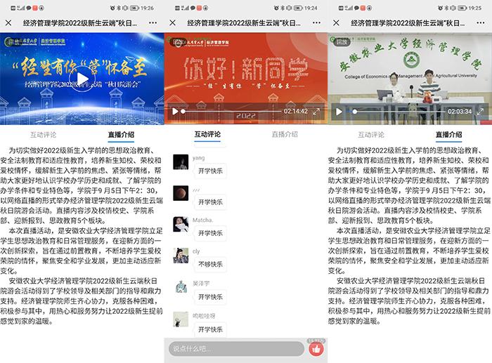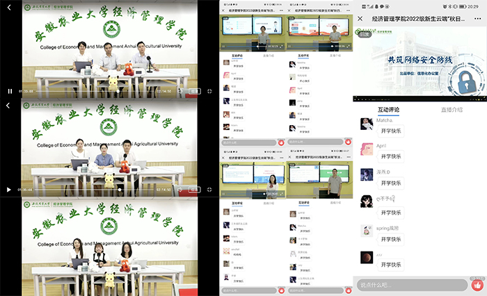 直播间里,两位主持人带领大家云逛安农、走进经管,学院领导、各系主任、专业教师轮番出镜,介绍学院发展、招生就业情况和特色活动、系部专业前景;校信息化办公室、辅导员们超前备课,积极宣讲网络安全知识、疫情防控政策、防诈骗技能,认真解读国家及学校资助政策和培育优良学风路径等;学长学姐精心准备,贴心地为新生们录制了新生报到流程,并带着大家一起探访了经管楼、食堂和新生宿舍。这一系列暖心举动,收获了评论区一大波好评。