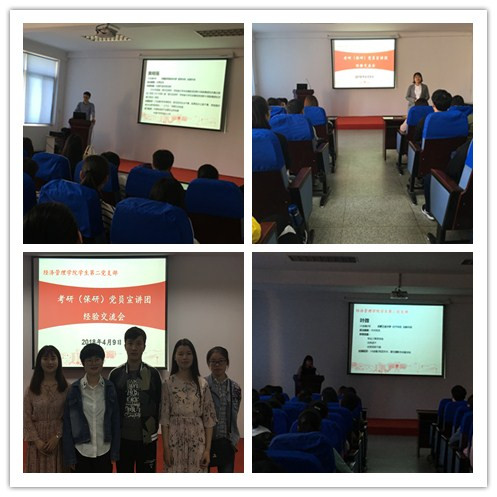 6名党员认真梳理精心准备,向学弟学妹们分享了宝贵的经验,诸如:提早确定报考院校,跨专业备考,制定详细的学习时间计划表,通过多种渠道搜集书籍和资料等