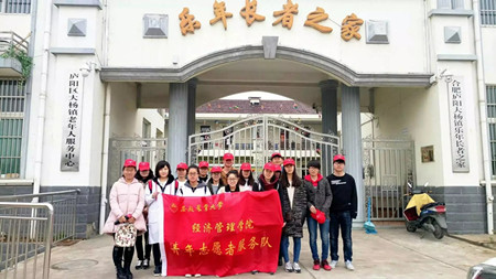 为了发扬雷锋精神,弘扬中华民族尊敬老人的美德,安徽农业大学经济管理学院学生分会志愿者