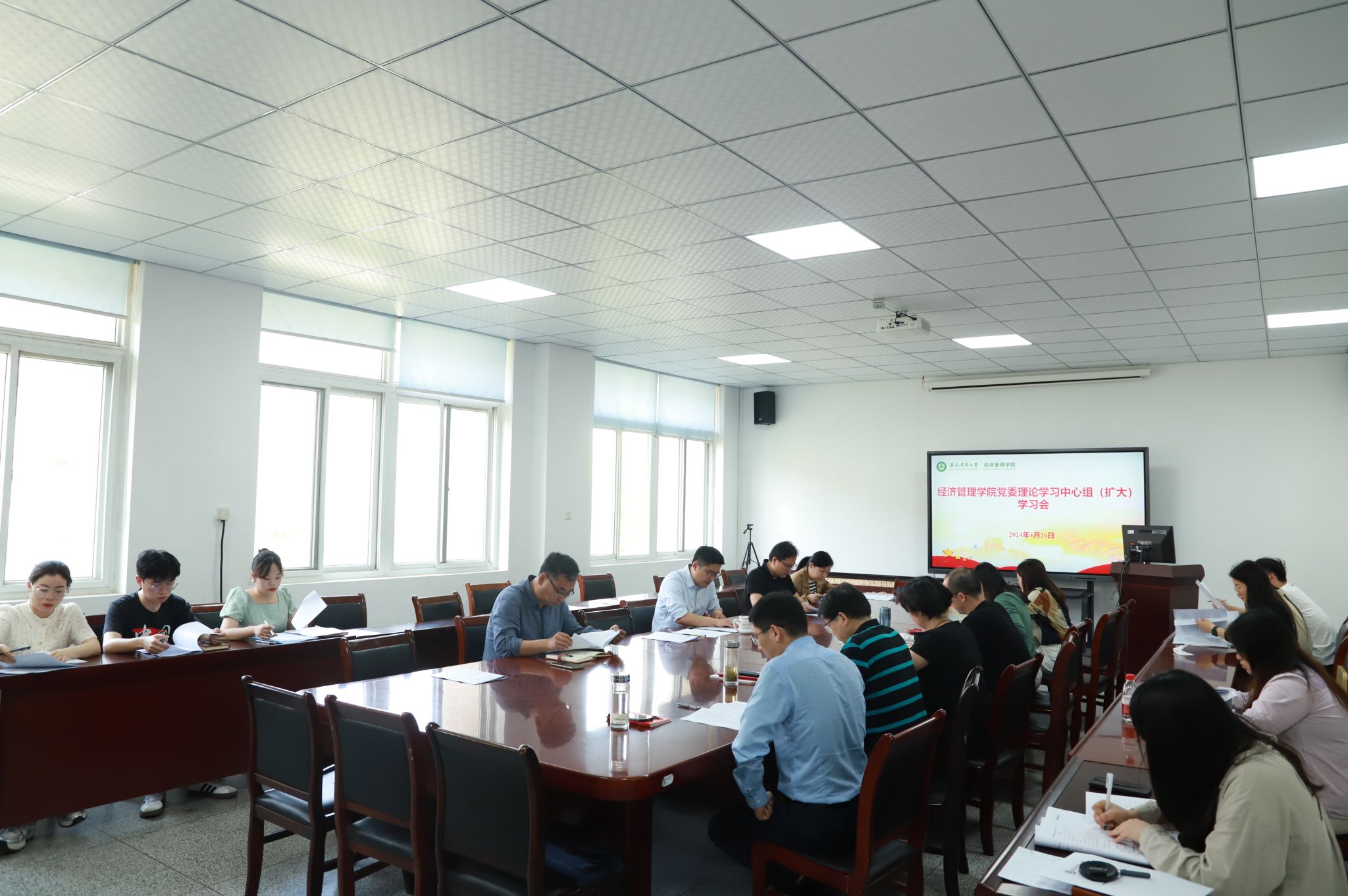 本网讯 4月26日下午,经济管理学院在经管楼304会议室召开党委理论学习中心组学习会。学院领导班子、党委委员、支部书记参加了此次会议。会议由学院党委书记吴国卿主持。