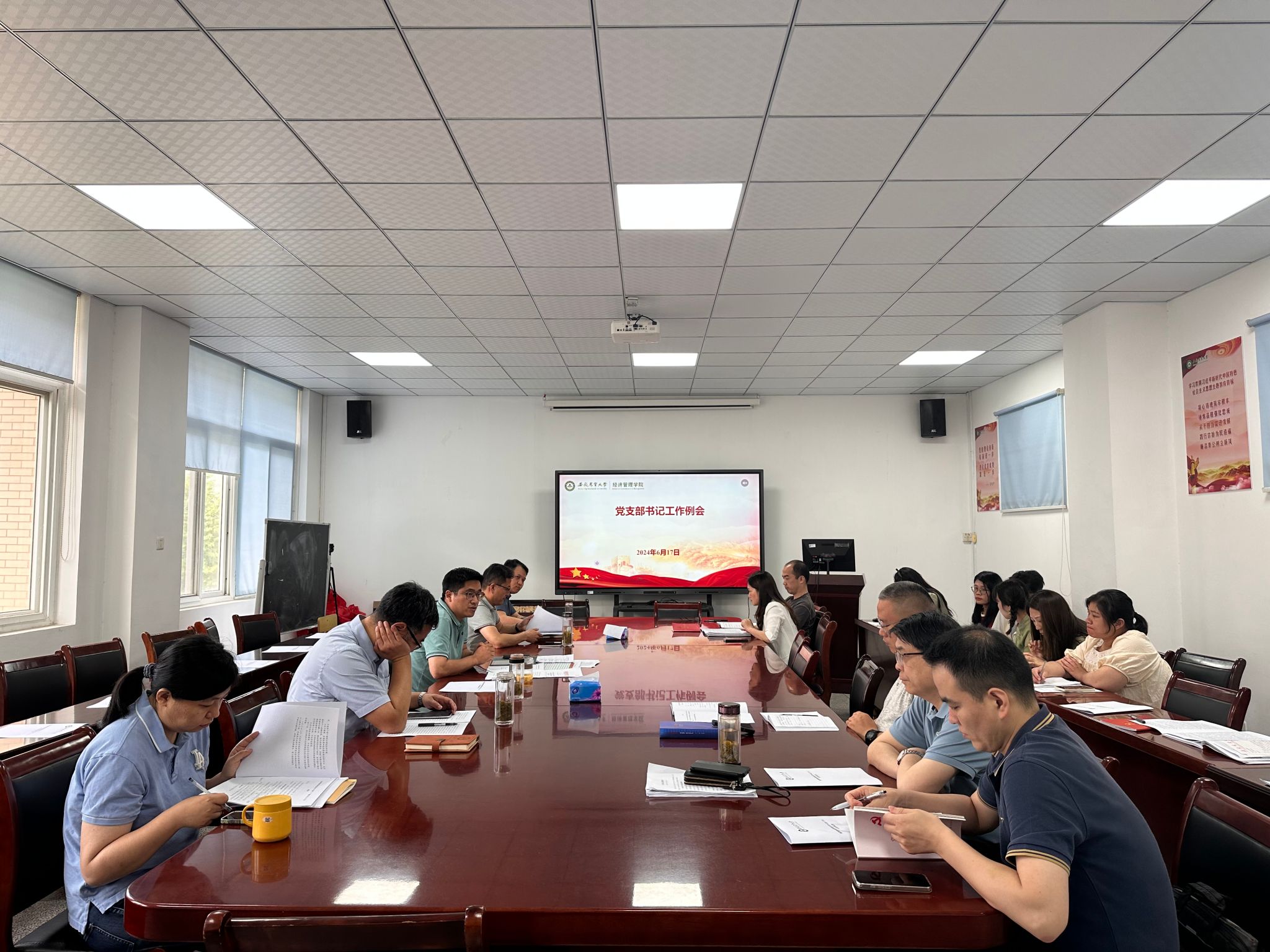 会议首先集中学习了《中共安徽农业大学委员会关于党内激励表彰工作实施办法(试行)》,并对党纪学习教育、“七一”表彰评选、毕业生党员档案核查、第二季度党费收缴等工作进行部署安排。