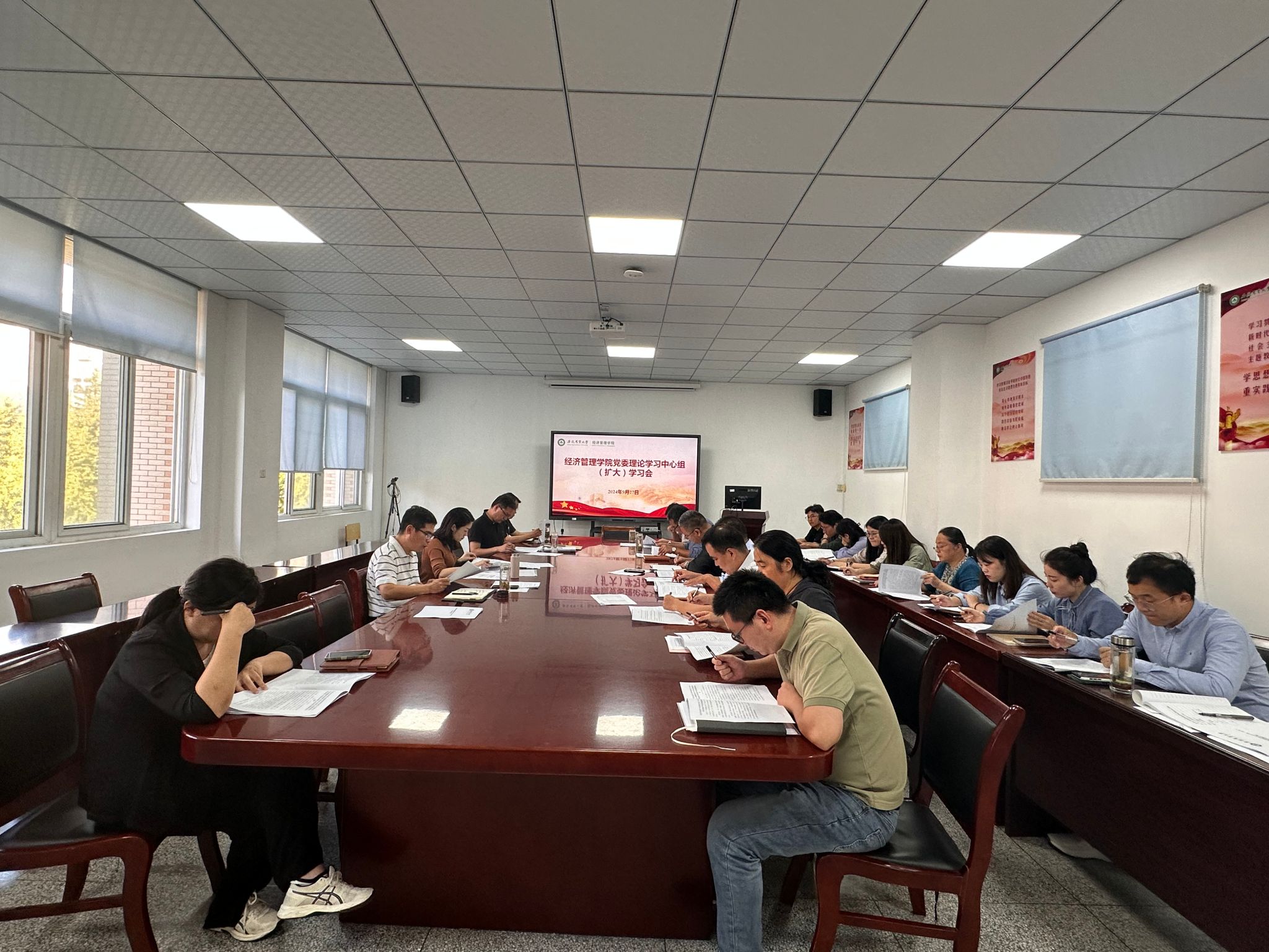 本网讯 9月27日下午,经济管理学院在经管楼304会议室召开党委理论学习中心组(扩大)学习会。学院领导班子、党委委员、党支部书记参加了本次会议。会议由学院党委书记武晓蓓主持。