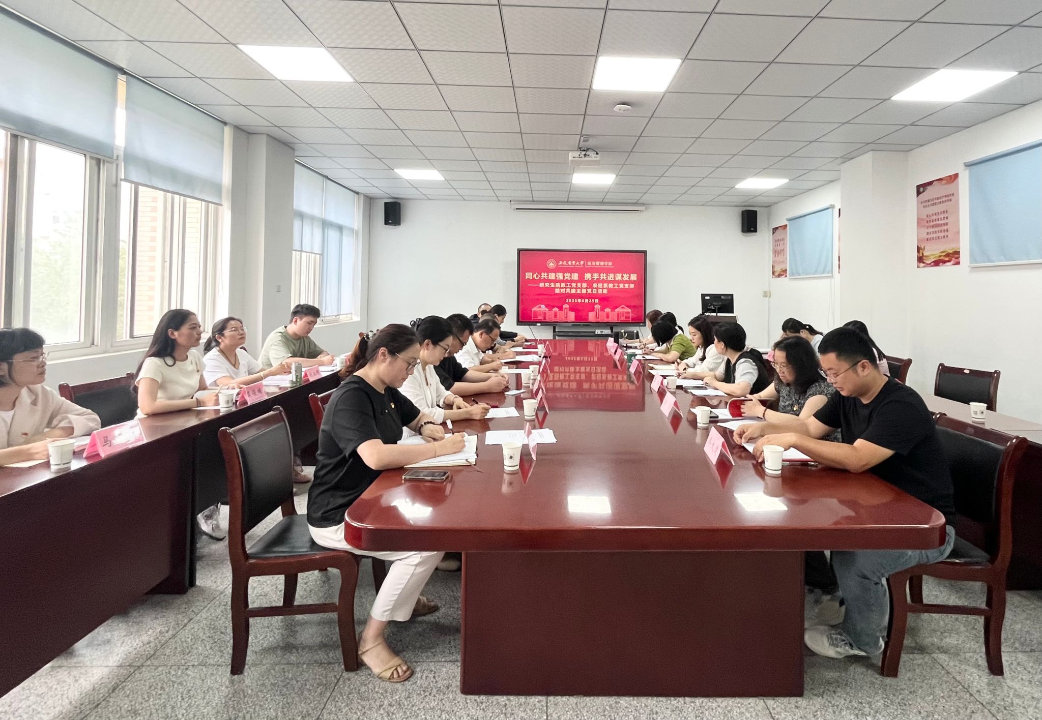 本网讯 6月25日,校党委常委、副校长陈黎卿深入基层联系点,参加研究生院党支部、经济管理学院农业经济管理系教工党支部“同心共建强党建 携手共进谋发展”结对共建主题党日活动,并讲授专题党课。