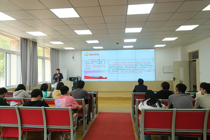 本网讯 为持续深入开展学习贯彻习近平新时代中国特色社会主义思想主题教育,牢牢把握“学思想、强党性、重实践、建新功”的总要求,引领广大学生党员深入学习领会习近平新时代中国特色社会主义思想,推动学院立德树人取得新成效。5月12日上午,院党委副书记、纪委书记、副院长吴国卿为学生第四、七党支部讲授主题教育专题党课。