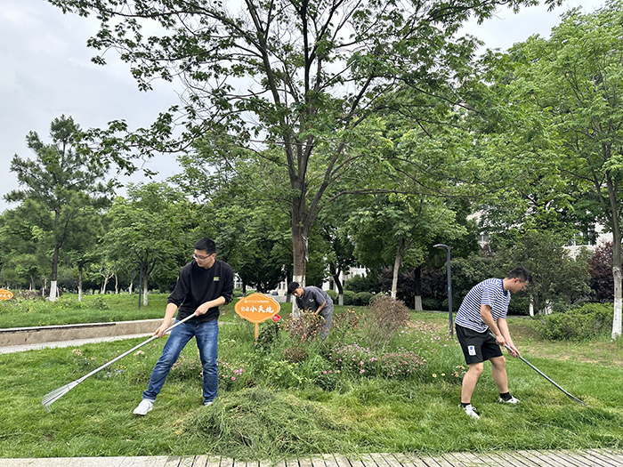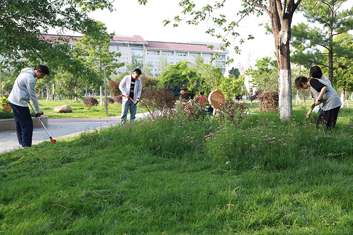 集体劳动实践,铸就青春底色。学院在四季小花园、劳动小天地、经管楼内、经管楼前广场、经管楼西侧、经管楼东侧、经管楼北侧等7块劳动责任区进行劳育活动,14个党支部、班级两两一组参与了活动。同学们对责任区域中的杂草、垃圾杂物、枯枝落叶等进行重点清理维护。在经管楼北侧的“四季小花园”和“劳动小天地”,认真清理道路上的垃圾,仔细整理花园中的杂草。两个小花园在同学们的呵护下重新焕发生机,为校园环境增姿添彩。