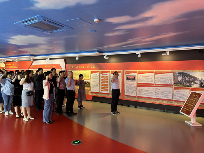 在讲解员的带领下,支部党员先后参观了序厅和“党性修养 立身之本”“理想信念 精神之钙”“纪律规矩 行为底线”“作风形象 人心向背”“不忘初心 继续前进”五个展厅,并观看了党性教育专题片《信仰的力量》。驻足在一段段珍贵的历史资料前,全体党员认真聆听讲解,通过一幅幅照片、一个个故事、一张张手稿,共同回顾了江淮热土上为党和国家做出巨大贡献的英雄楷模,深切感受了中国共产党为中华民族伟大复兴不懈奋斗的百年光辉历程,进一步加深了对党的性质、宗旨、初心、使命、优良传统和作风的理解。支部党员纷纷表示,通过此次党性学习,补足了精神之“钙”,增强了身为党员的责任感和使命感,在以后的学习与工作中一定会以革命先烈和先进模范为榜样,继承和发扬党的优良传统,不断提高党性修养和业务能力,发挥好党员的先锋模范作用,为党的事业贡献自身力量。参观结束后,赵智带领全体党员面向鲜艳的党旗举起右拳,重温了入党誓词,接受心灵的净化和洗礼。