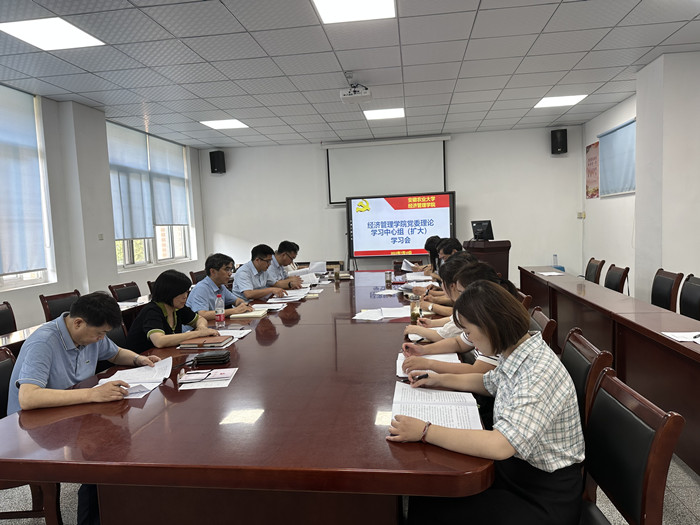 本网讯 7月10日下午,经济管理学院召开党委理论中心组(扩大)学习会。会议学习习近平总书记最新重要讲话精神,传达省委书记韩俊来校调研时讲话精神,传达校党委常委会(扩大)会议精神。学院党委理论中心组成员、学院纪委委员、各支部书记参加了本次学习会。会议由学院党委副书记吴国卿主持。