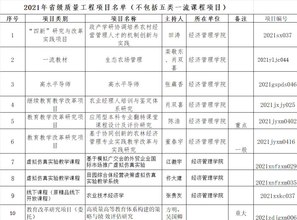 2021年省级质量工程名单(经济管理学院)
