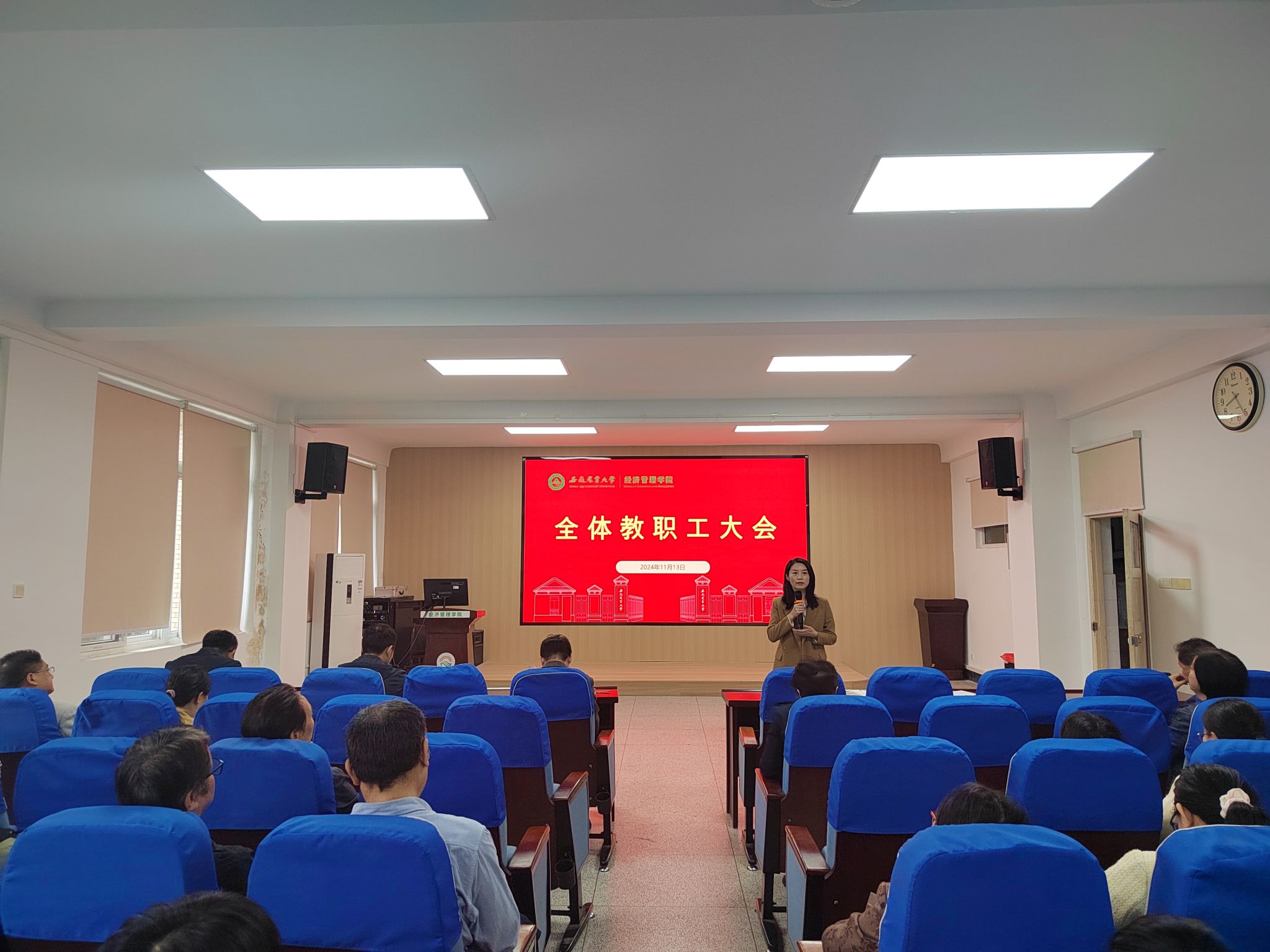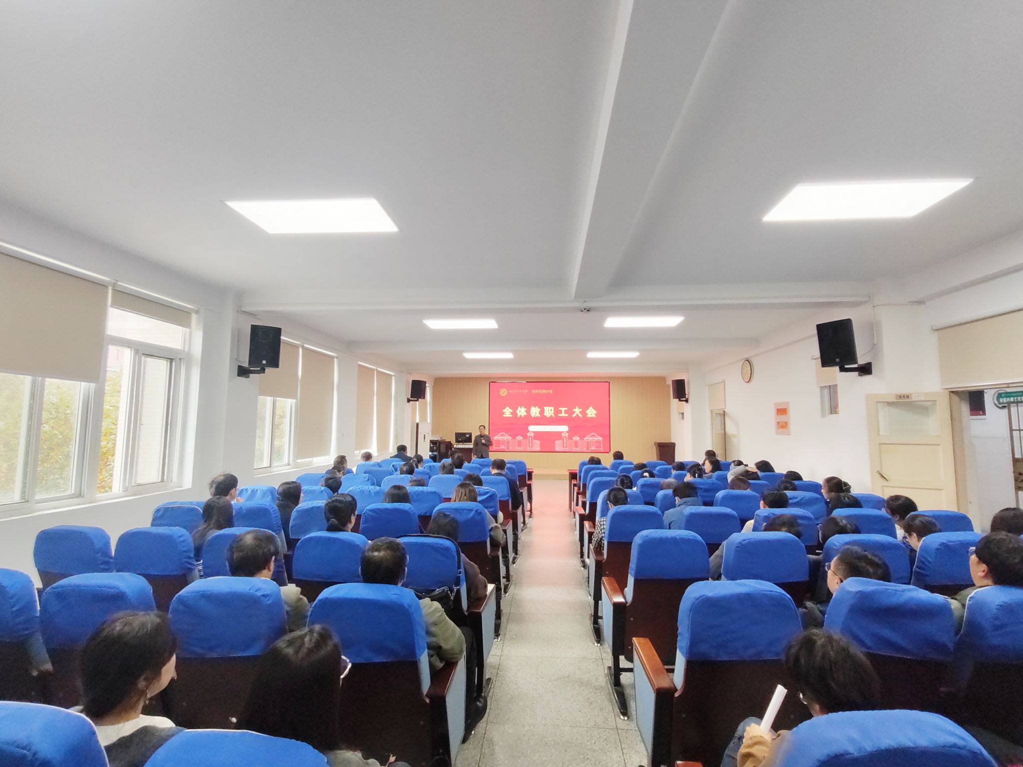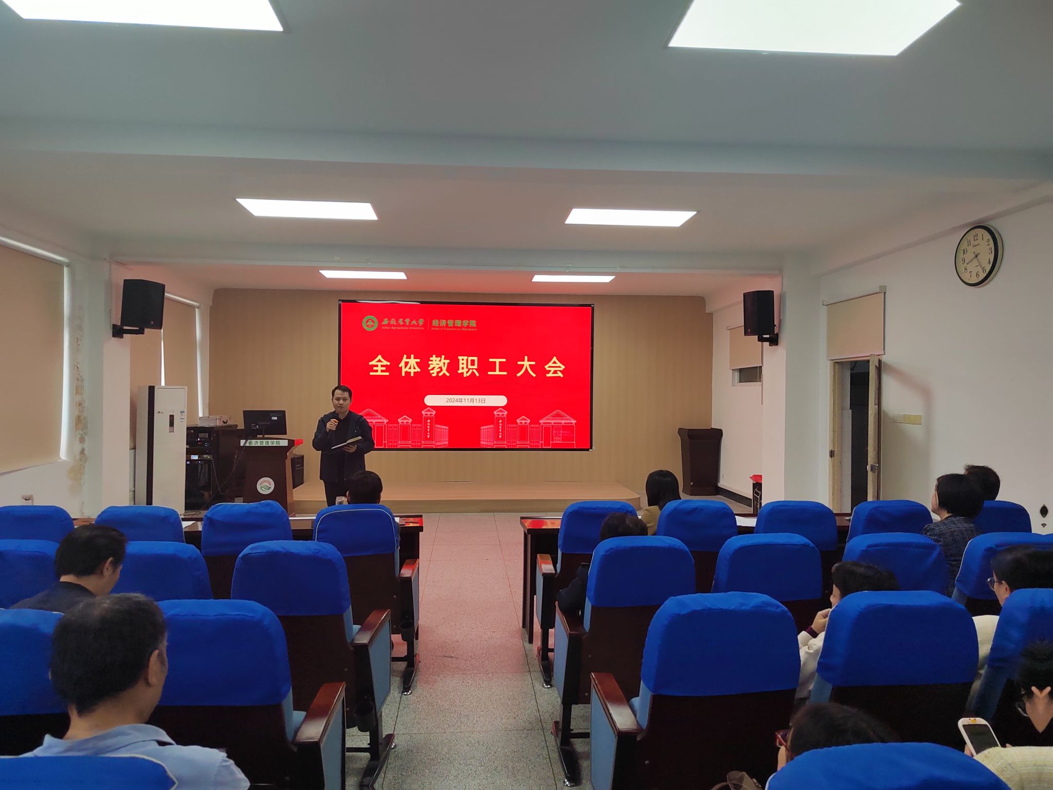 本网讯 11月13日下午,经济管理学院全体教职工大会在经管楼321会议室召开。学院班子成员及全体教职工参加会议。会议由学院院长尹世久主持。