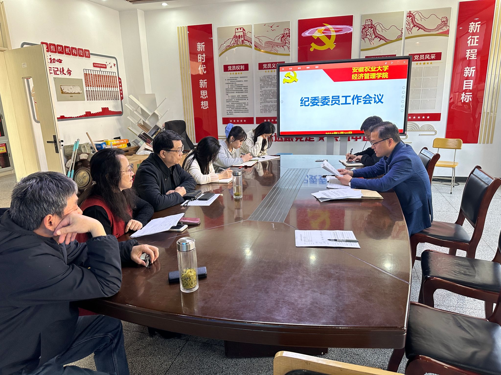 本网讯 3月29日上午,经济管理学院在经管楼302会议室召开纪委委员(扩大)会议,开展集中学习和工作布置。学院全体纪委委员和部分党支部书记参加会议,会议由院党委副书记、纪委书记周涛主持。