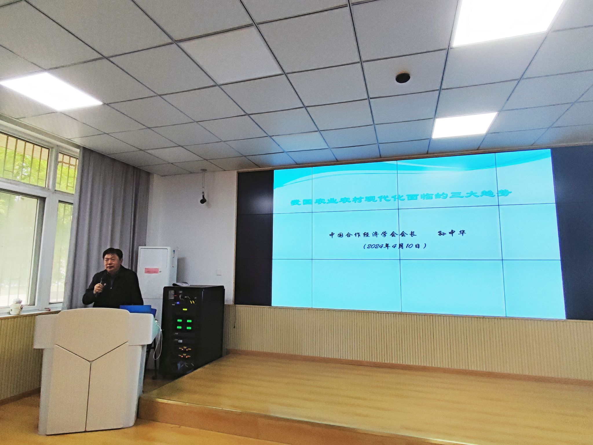 本网讯 4月10日,中国合作经济学会会长孙中华应邀开讲“林宽讲堂”第十期,为经济管理学院师生作了题为“我国农业农村现代化面临的三大趋势”的学术报告。经济管理学院院长尹世久、学院教师及研究生150余人参加了报告会。